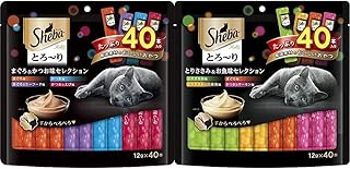 【セット買い】シーバ (Sheba) 猫用おやつ とろ~り メルティ まぐろ&かつお味セレクション 12g×40本入 & シーバ (Sheba) 猫用おやつ とろ~り メルティ とりささみ&お魚味セレクション 12g×40本入
