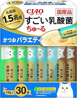 チャオ (CIAO) 猫用おやつ すごい乳酸菌ちゅ~る かつおバラエティ 14グラム (x 30)