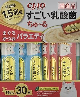 チャオ (CIAO) 猫用おやつ すごい乳酸菌ちゅ~る まぐろ・かつおバラエティ 14グラム (x 30)