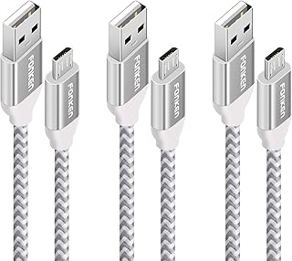 FONKEN マイクロ USB ケーブル、USB - マイクロ USB ケーブル [3 パック、10 フィート] ナイロン 編組USB 2.0 ケーブル 急速 充電 と データ 同期 コードAndroid 充電 ケーブル Samsung, Nexus, LG, Motorola, Sony 対応 ホワイト - 10FT