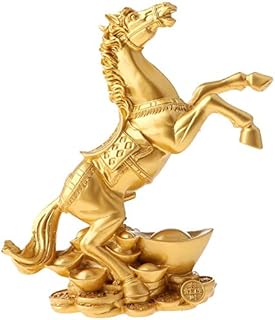 Yikko 馬のモデル 風水置物 樹脂 工芸品 風水グッズ ゴールドタイプ 縁起物 オフィス 車 家 玄関 装飾品 インテリア 幸運 - ゴールド (Size: 21 x 7.5 x 22 CM)