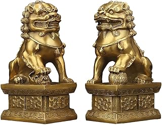 獅子 狛犬 招財 雄雌セット 一対 銅製 風水グッズ 風水置物 インテリア 商売繁盛 魔除け 邪気除け お守り 2体セット 運気アップ 風水アイテム 金運 ギャンブル運 財運 開運 お礼 新年 贈り物 (S)