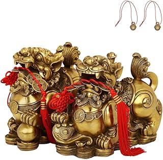 麒麟 招財 一対 銅製 風水グッズ 風水置物 風水グッズ キリン インテリア お守り 2体セット 運気アップ 風水アイテム 魔除け 金運祈願 財運 開運 お礼 新年 贈り物 (XS)