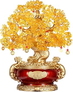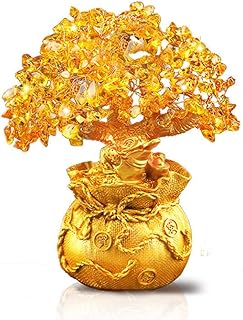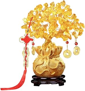 招財樹 金のなる木 黄水晶 風水置物 元宝 シトリン インテリア 金運祈願 開運 商売繁盛祈願 風水アイテム パワーストーン お礼 新年 開店祝い 贈り物 (Middle size:12*22cm)