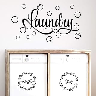 ランドリールーム デカール 引用 洗濯乾燥 ビニール 洗濯 ステッカー 壁アート バブルステッカー 洗濯 ステッカー 洗濯 引用 家 アパート 洗濯機 乾燥機 洗濯 部屋 クローゼット 雑貨 (ブラック)